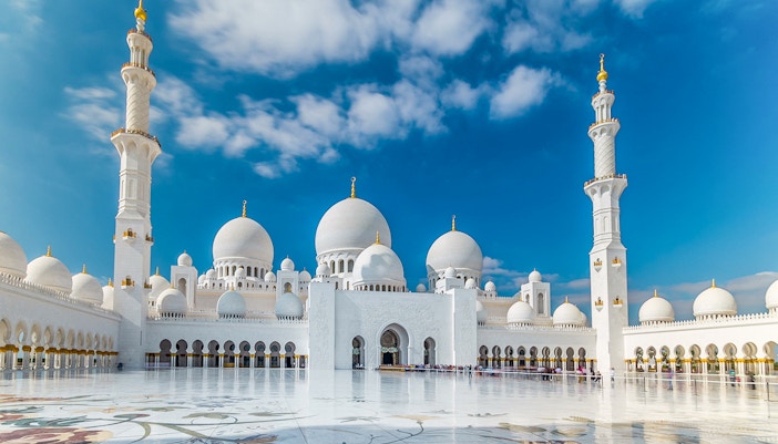 What to look out for: Main prayer hall · Marble courtyard & reflecting pools · Grand chandeliers